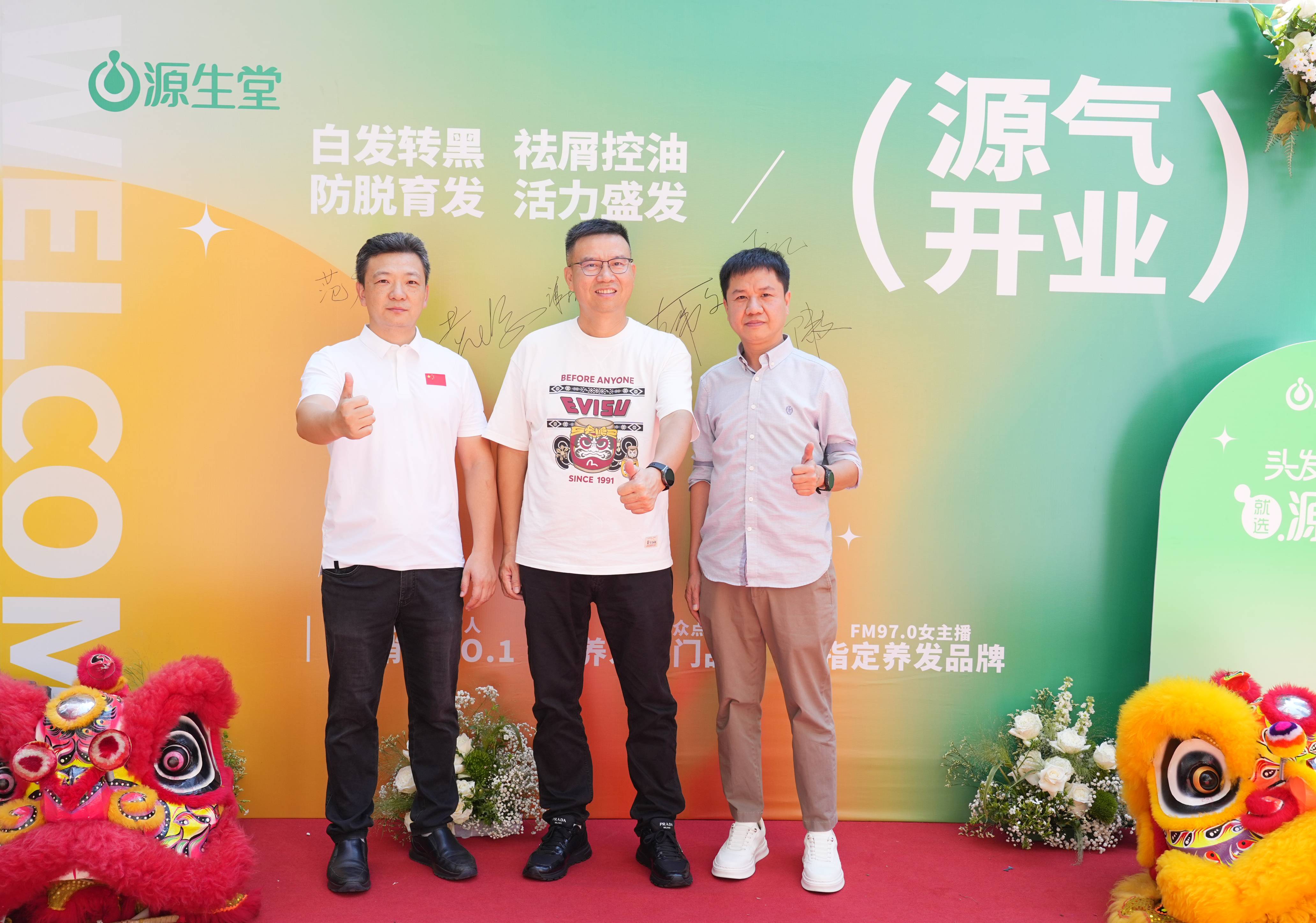 盛天集團(tuán)董事范廣先生(左)、源生堂品牌創(chuàng)始人黃偉文先生(中)、盛天商業(yè)總經(jīng)理陳文先生(右)