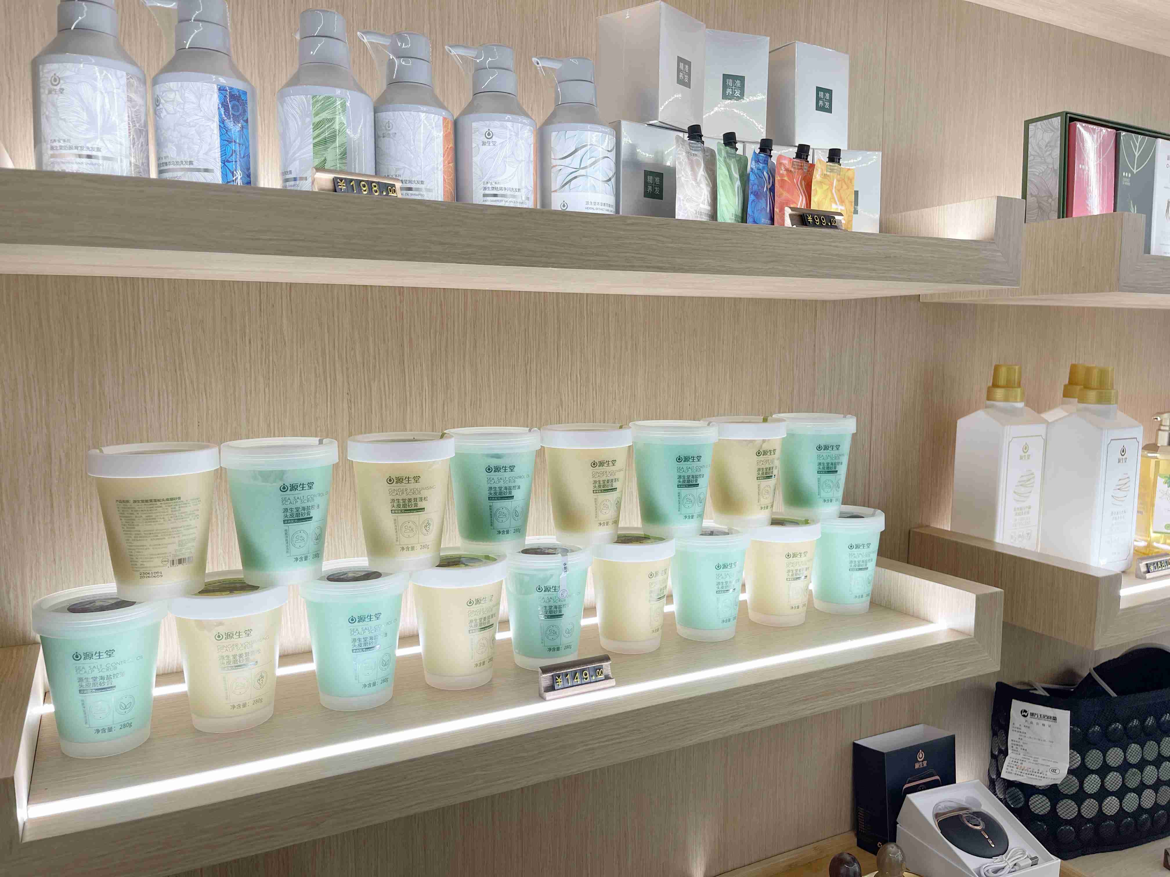 源生堂產(chǎn)品展示區(qū),包裝時(shí)尚精致的產(chǎn)品,引進(jìn)了大家的濃厚興趣。產(chǎn)品與中國(guó)科學(xué)院過(guò)程工程研究所、廣西中醫(yī)藥大學(xué)聯(lián)合研發(fā),聚焦脫發(fā)、白發(fā)、頭油、頭屑等日常頭皮頭發(fā)困擾,擁有國(guó)家專利和國(guó)妝特證,經(jīng)過(guò)上萬(wàn)次實(shí)驗(yàn)后才會(huì)使用到消費(fèi)者頭上,植物本草成分,對(duì)頭皮非常友好,得到全國(guó)50萬(wàn)門店客戶的親測(cè)和推薦。
