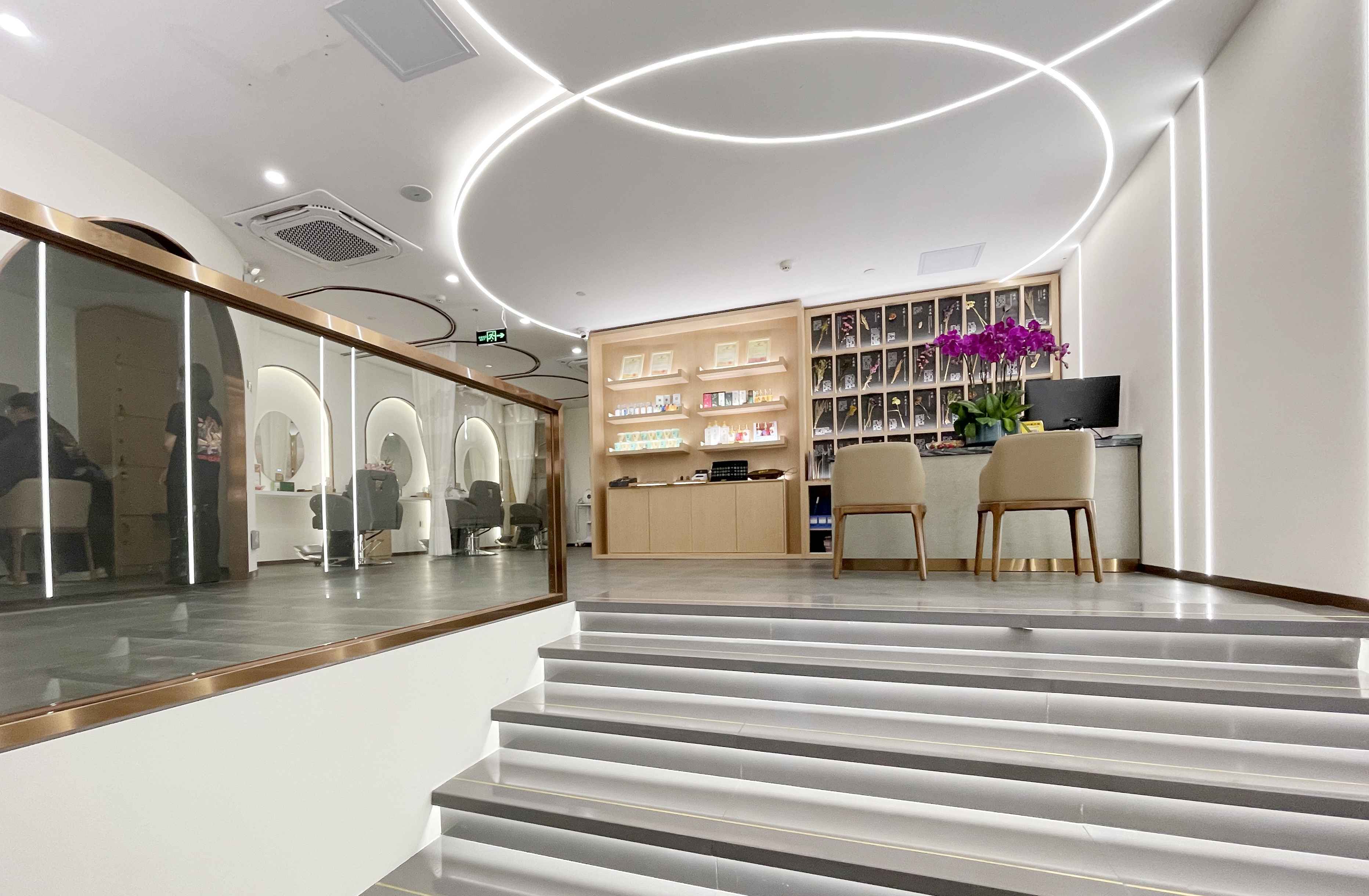 店內(nèi)沒有過(guò)多繁雜的裝飾,靜謐空間,分區(qū)合理,在繁華都市開辟一處寧?kù)o治愈之地,在這里您可以享受一段充滿儀式感的養(yǎng)發(fā)時(shí)光,感受生活之外的小確幸。